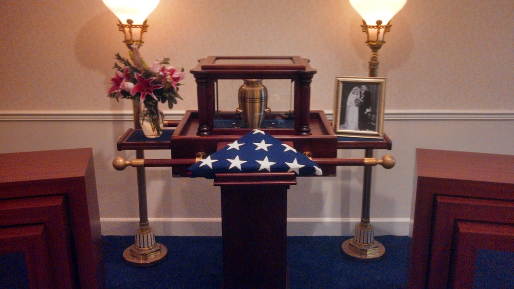 An urn is not required by law. However, an urn may be desired if there is to be a memorial service or if the remains are to be interred in a cemetery. All crematories will return the cremated remains in a black plastic container to the funeral home. At Harris, we will then transfer those into a cherry stained wooden urn at no charge to the family.